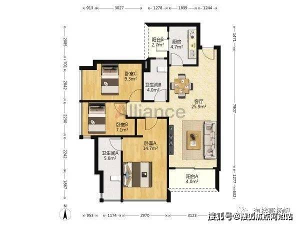 ◆户型:3室2厅1厨2卫1阳台