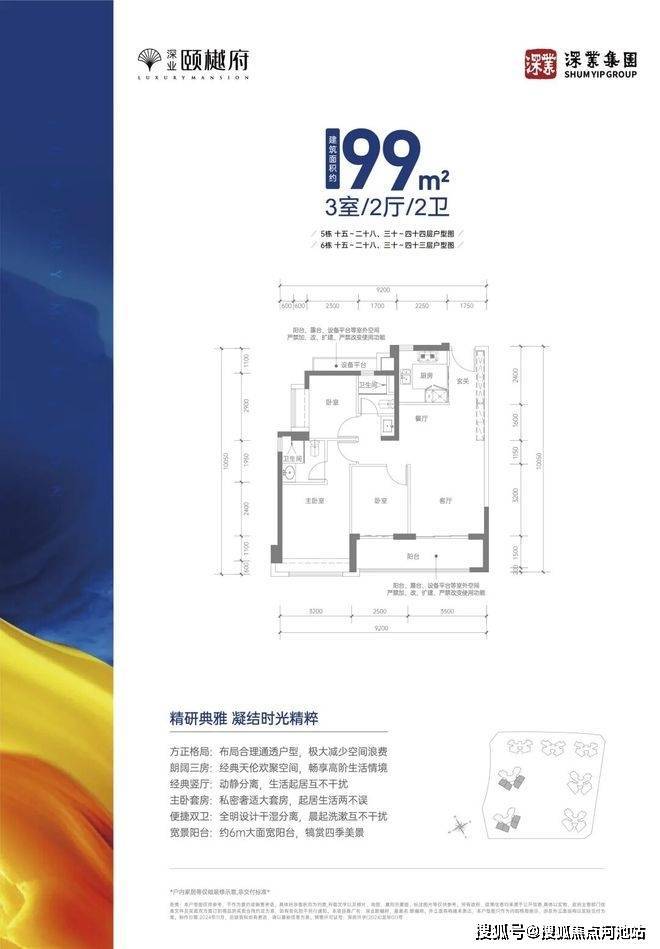 主流三至四房户型,格局方正采光通透,宽景阳台揽胜云端,栖居一府天地,私享一方静界。