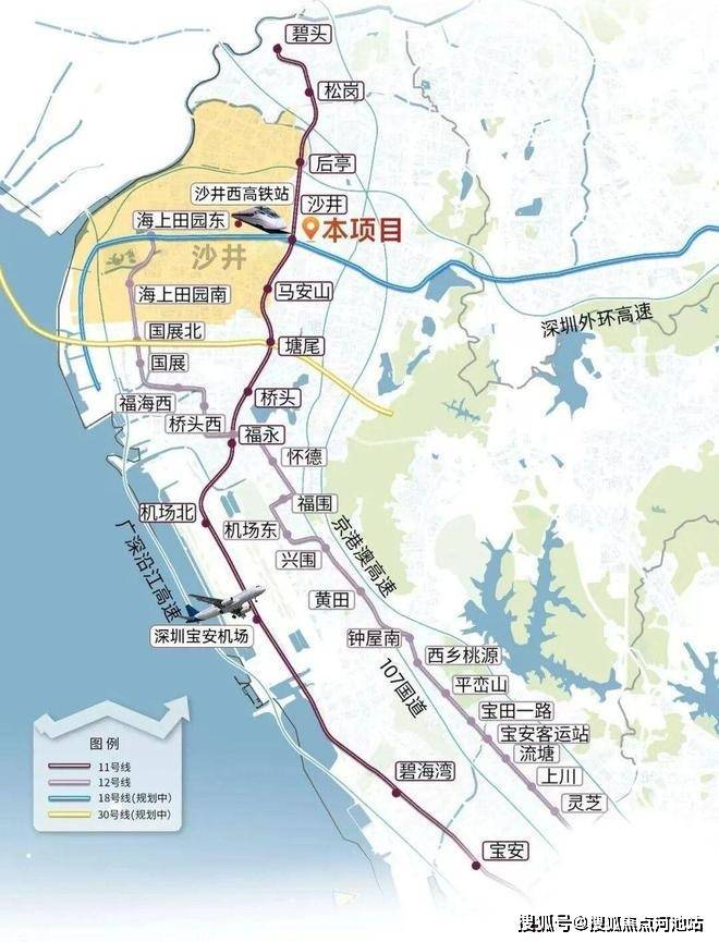 轨道交通:距离11号线“沙井站”直线约350米,步行550米,8-10分钟,6站直达宝安机场,8站宝中,9站前海