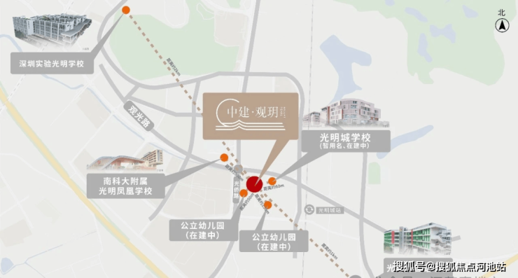 区位:中建观玥位于光侨路与观光路交汇处,临近地铁 13 号线德雅路站,地处光明区核心板块 —— 区政府所在地,区域开发成熟,地铁与名校配套已完善,城市界面崭新。