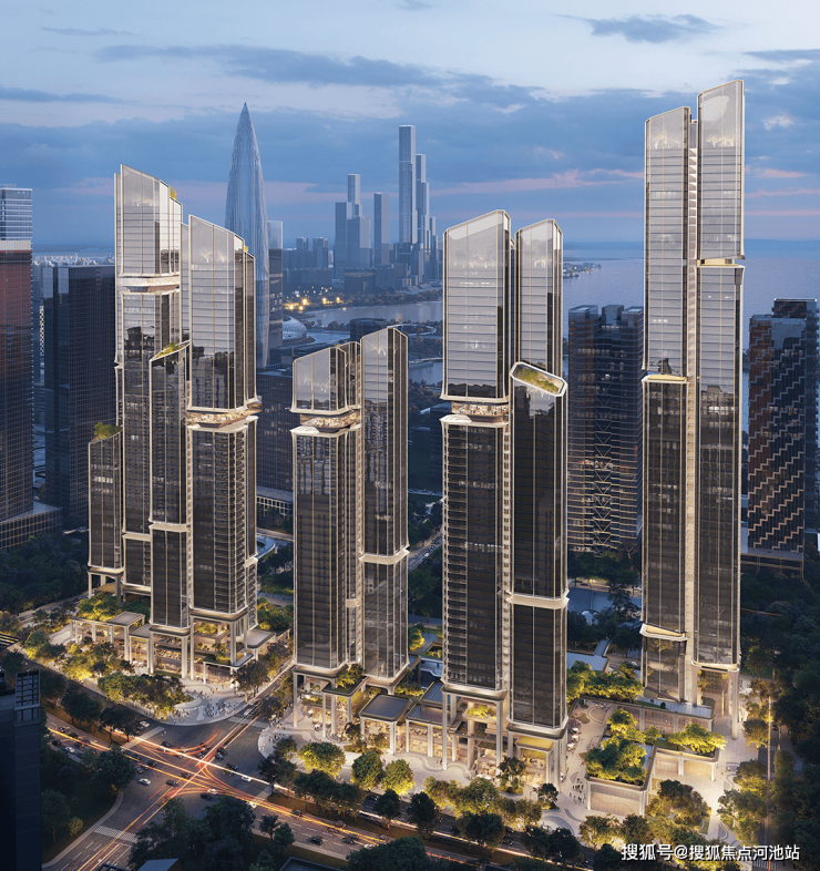 项目由五座150-250米塔楼组成,采用错落布局和平面退台设计,以优化深圳湾景观视野。