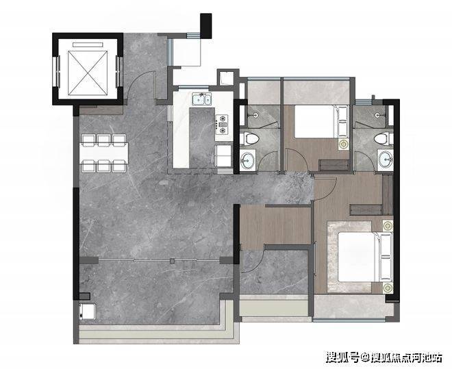 :约44㎡LDKG大方厅,U型厨房+岛式西厨,主卧配豪华衣帽间和270°转角飘窗。