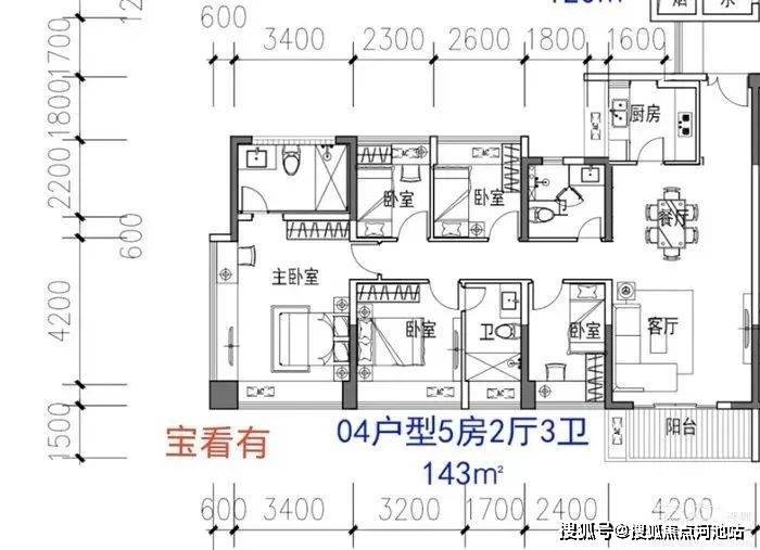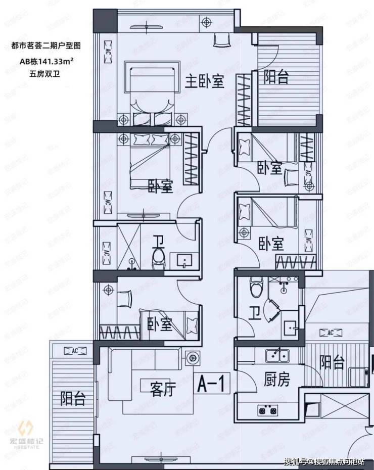 三个阳台的面积更大,空间更阔绰,而且罕见地设计为5房。
