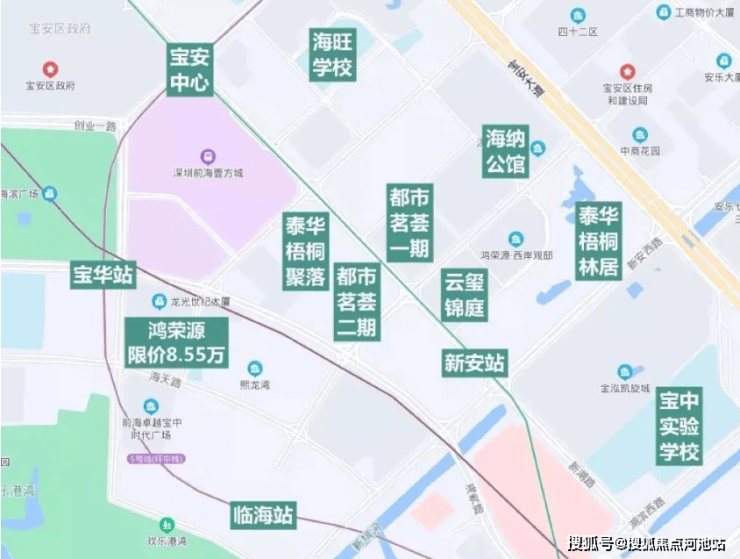 都市茗荟二期在宝中新湖路旁,与一期隔着新湖路对望,旁边是泰华·梧桐聚落花园。