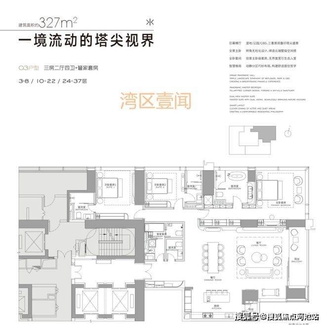 项目首推T3栋约123套面积304-327--402-570-1032㎡户型;