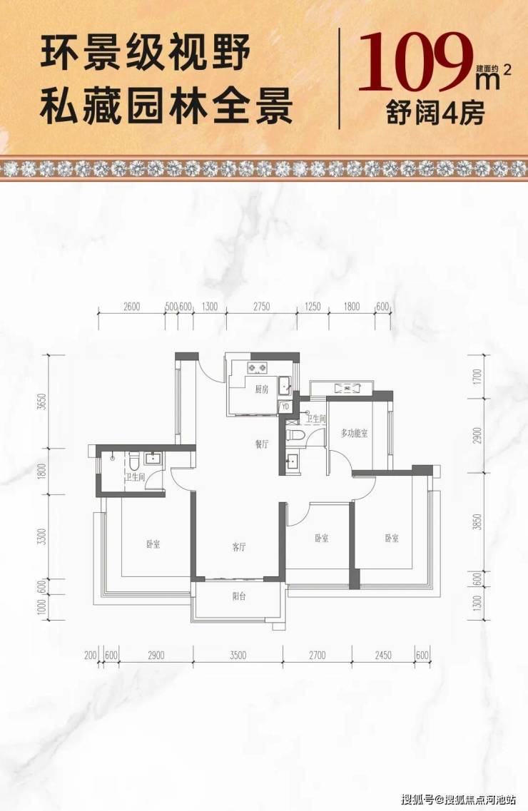 109㎡的4房2厅2卫,折后总价556-575万/套,单价5.09-5.27万/㎡。