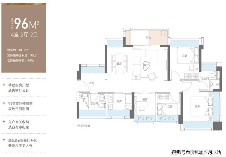 高质产品:建面约76-130㎡精质美宅,实际使用率达91-99%,更大居住空间,更高舒适度;