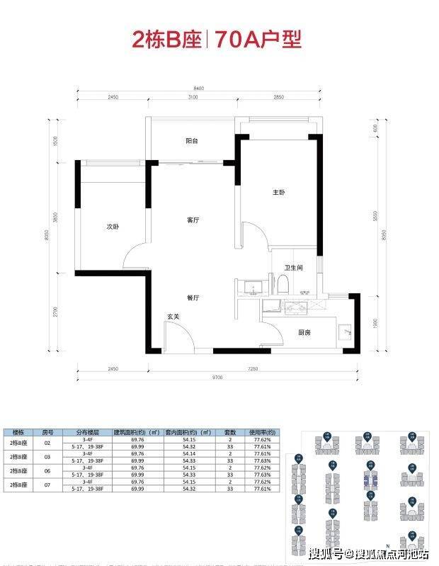 70A为“双龙抱珠”户型,采光面大,卧室、客厅空间舒适性较好;