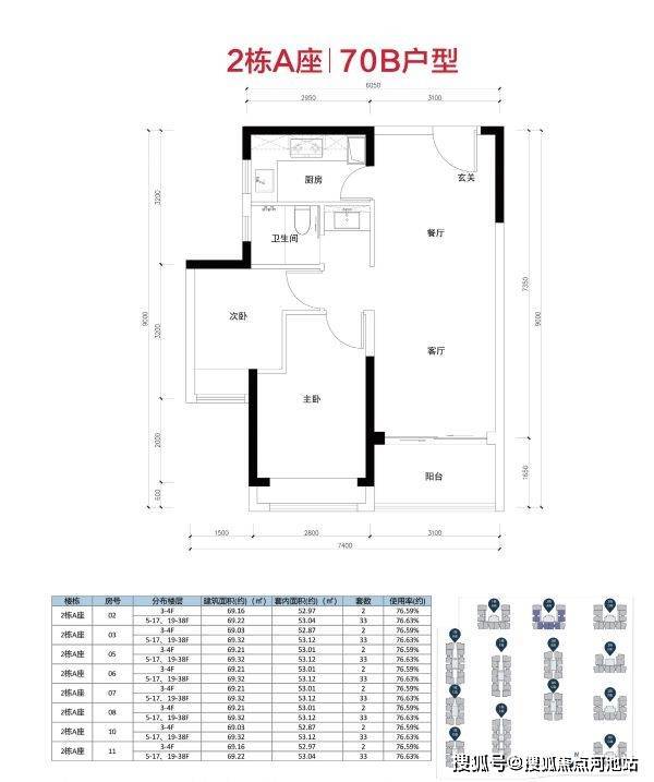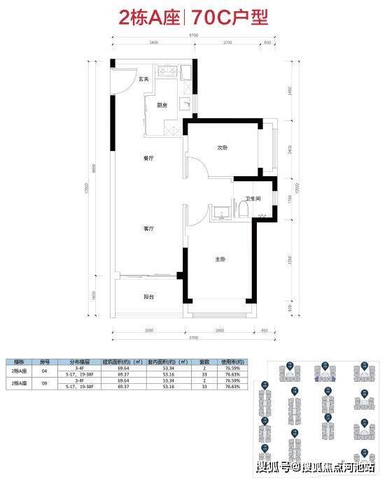 主要分为70A/70B/70C三个户型: