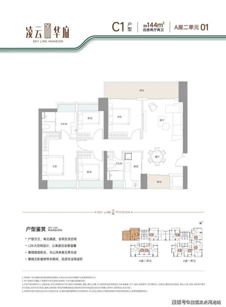 面积:127㎡3房2卫,144㎡4房2卫