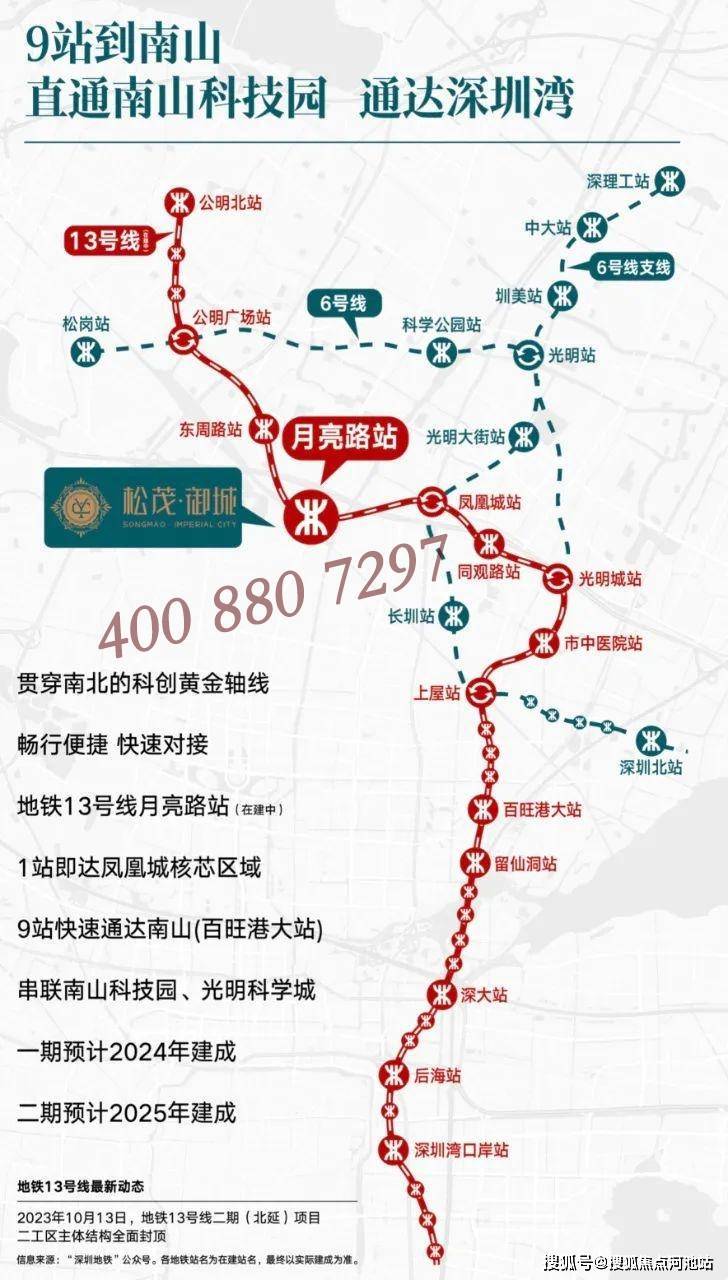 在建13号线月亮路站直线距离楼盘约600m,从月亮路站乘坐地铁1站即可到达凤凰城,通达南山科技园、深圳湾口岸,对于在南山上班的购房者来说,将大大减少通勤时间。同时从凤凰城站可以换乘6号线,通达深圳北站及福田区。