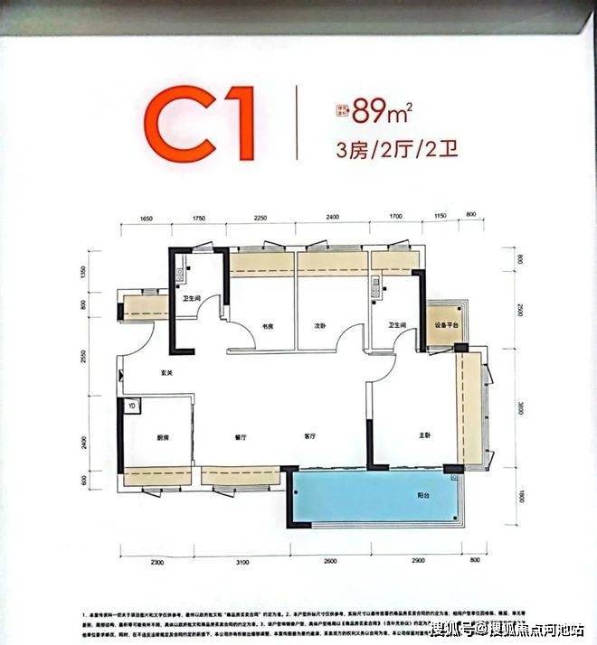 89㎡的3房2厅2卫: