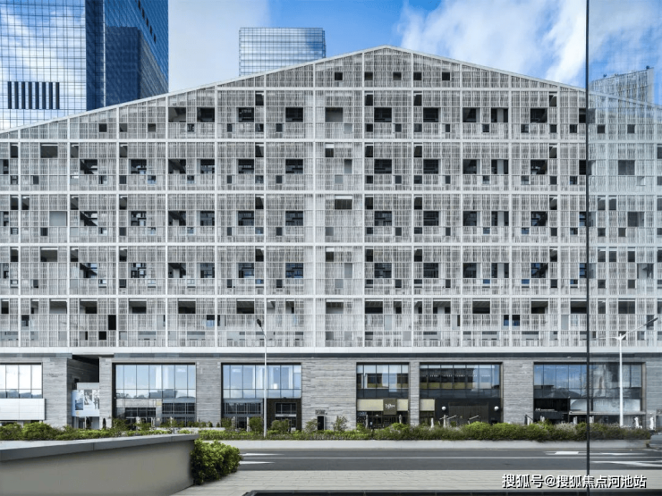 人们穿过喧闹的城市道路,乘扶梯上至屋顶平台,眼前豁然开朗,现出“屋舍俨然”的LOFT小镇。同时这片LOFT体块又是被周边的高大体量所包裹着的,围合出一片被隔离的“都市桃花源”。高低错落,空间变化丰富的小镇,让商业、办公与住宅人流在同一街区活动,创造了一种接待、办公、商业与文化空间融合的聚落式街道生活新模式。