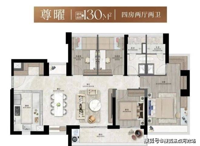 建面约126-130㎡4房2卫,堪称一步到位的改善终极选择,把舒适灵动做到了极致。