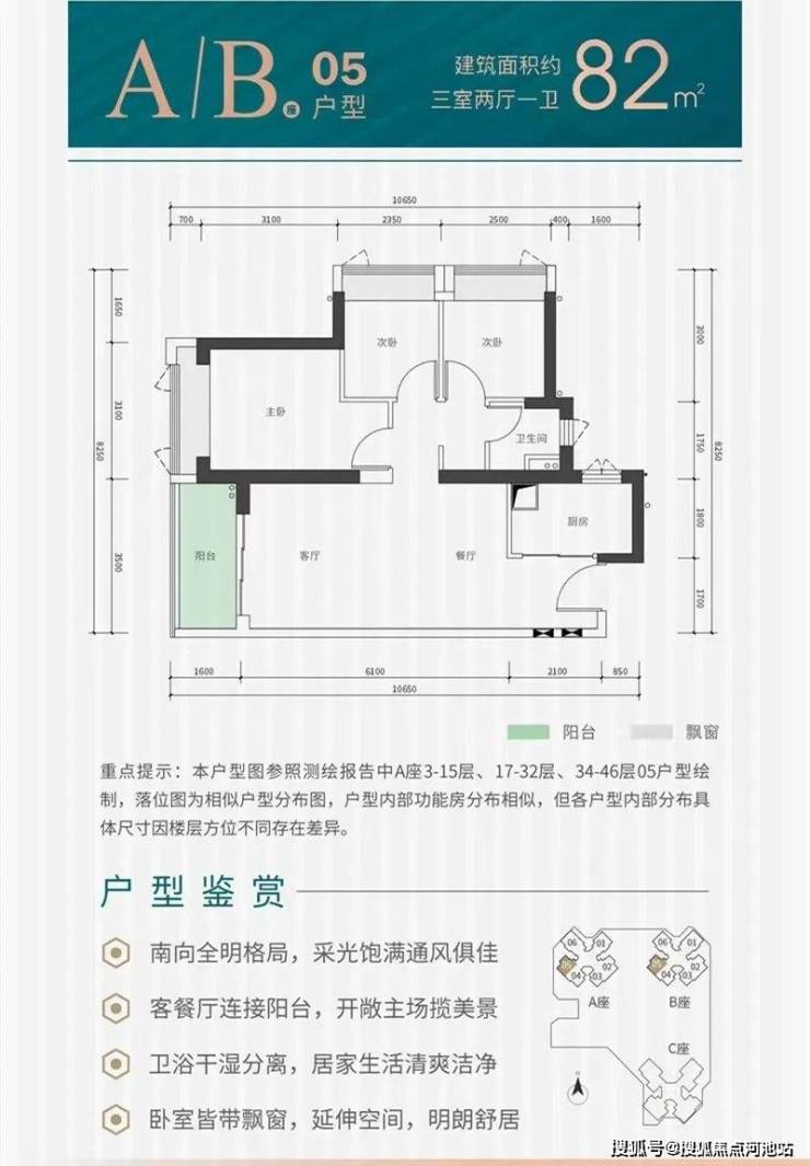 项目户型:建面约82-115㎡三至四房