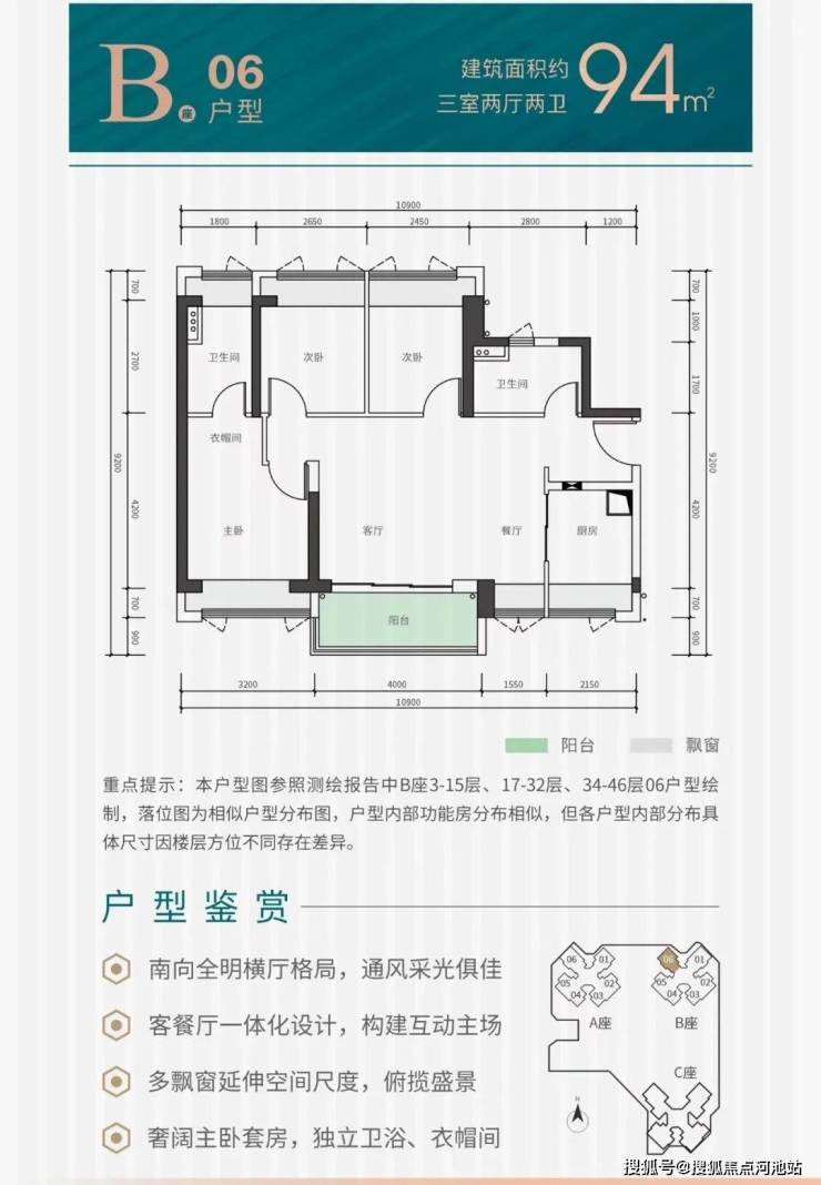 2、户型朝向全南向设计,所有户型都是东南向、西南向分布,兼顾视野、采光、隐私性。