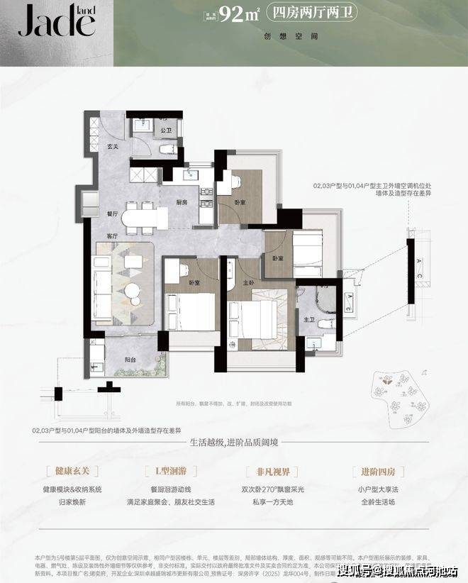 92㎡的4房2厅2卫,折后总价426万起,套均445万,单价4.83万/㎡。