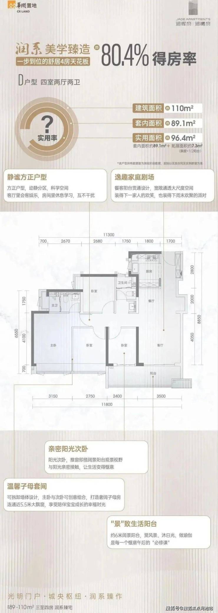 【润系美学,精研筑家】以东方简雅审美的润系精神,打造高实用率空间、精细收纳系统,实现美感与实用并存,建面约89-110㎡三至四房,润系臻宅,盛载全家人的生活向往。