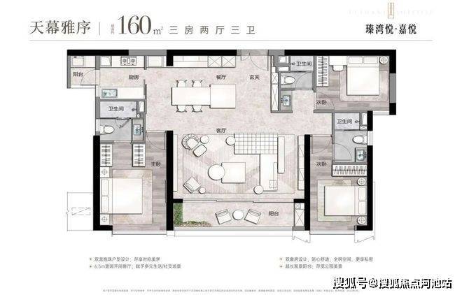 位于前海妈湾的万科瑧湾悦推出大平层公寓产品「嘉悦」,仅130席,户型为约160㎡3房和约228㎡4房,主朝向西南向看公园,高区可眺望整个前海天际线和海湾景观。为精装现房,酒店式入户大堂设计,两梯两户独立电梯厅,约3.5m层高,70年产权(民水民电通燃气)。