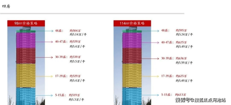 98㎡的4房2卫,45套,折后总价504-539万/套