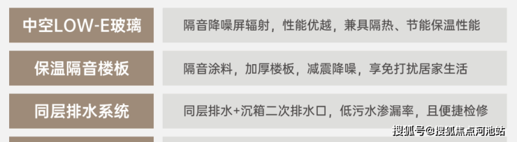 精益求精,高标准打造中空LOW- E玻璃、保温隔音楼板、同层排水系统、6S安防系统等,减少生活困扰,精工品质筑家,致敬美好生活!
