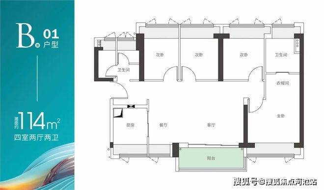 B座01户型-建面约114m² 四房两厅两卫