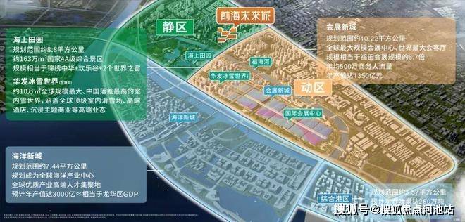 动区:涵盖会展新城和海洋新城两大产业商务办公区,吸纳百万客流。