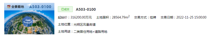 2022年11月25日,“中海” 在深圳第四轮集中供地中,经过3轮竞价,最终以31.92亿元竞得的 光明A503-0100宗地,现已命名为「中海时光镜」。