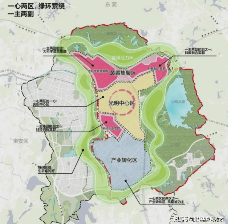 其次,光明凤凰城,作为光明科学城 “一心两区” 中的产业转化区,布局了多个重点项目,聚焦先进制造、企业总部、交通枢纽等功能,将打造产业集聚的智造高地和功能完善的城市会客厅。