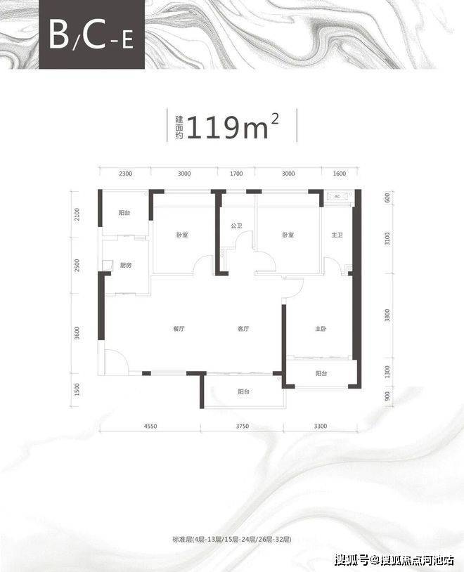C栋B/C/E户型、约118-119㎡三房两厅两卫