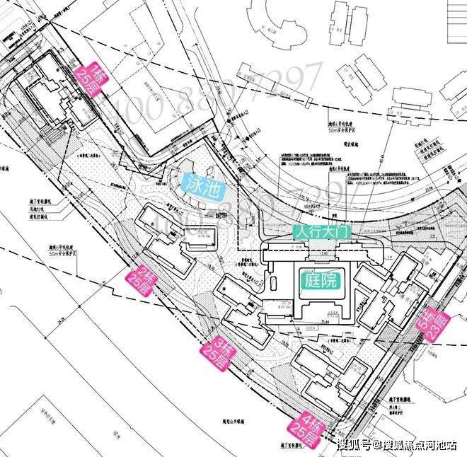 限高80米,规划5栋24-25F。项目容积率2.8,纯住宅社区。