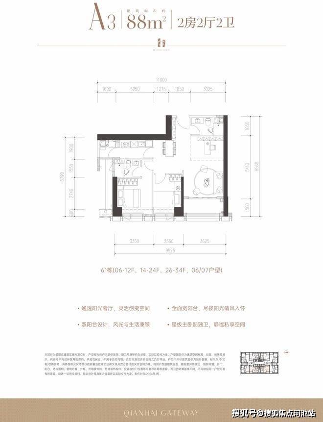 前海桂湾「前海时代三期·尊府」加推5-1地块的住宅「前海之门」,已开样板房,预计3月20日取证,月底开盘。楼栋号为61栋,标准层4梯8户,户型包括: