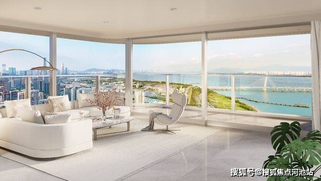 搭配270°景观阳台、客厅转角无柱设计、以及室内最高约3.6m的阔绰层高,能将窗外海景形成巨幕级别的景观体验。