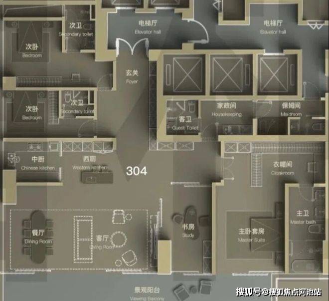 · 低区5F起(150米以内)是约209-304㎡四房以上大户型;