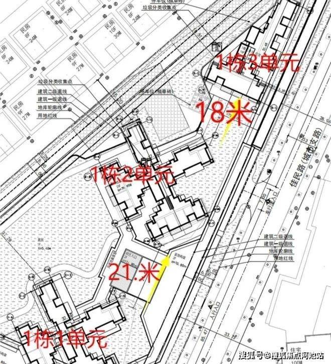 从楼栋的分布看,1栋2单元84平主卧到隔圳新村的间距是16.2米,1栋3单元有37米,3单元到金地上塘道二期是28.9米,1单元的78平离金地上塘道二期也有33米,这个距离还包含了佳民路本身的路宽,所以都算是“握手楼”的范畴,站在马路上就能看见里面的阳台和窗户。