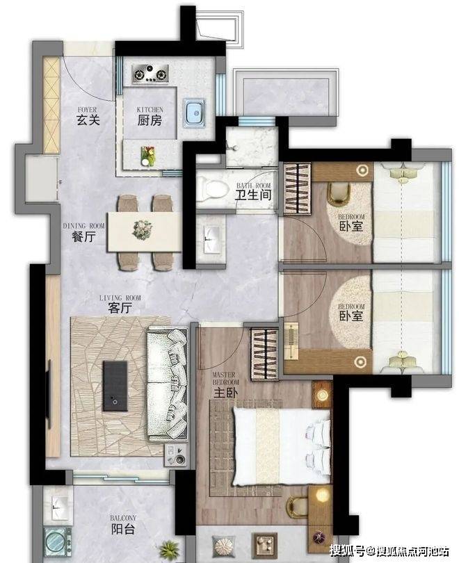 4、户型使用率较高,76㎡做了三房一卫,86㎡做三房两卫;