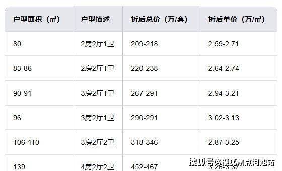 翰林汇2期部分户型的折后价格区间: