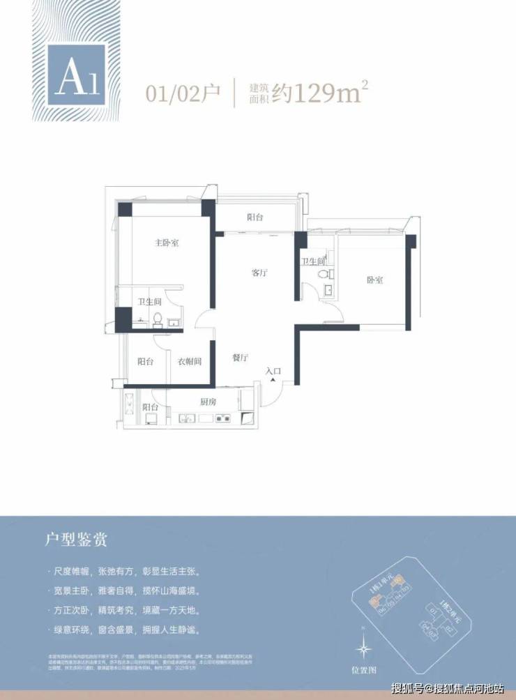 🔹1栋一单元A1、A2户型:面积约为129㎡
