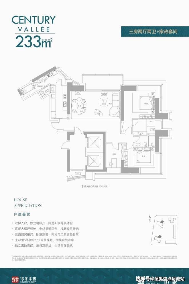 深业世纪山谷前两次都是公寓,现在住宅首发!还是定位相当高端的纯大平层,8梯3户,240㎡/280㎡配备两个独立电梯,380㎡双梯设计,实在任性!
