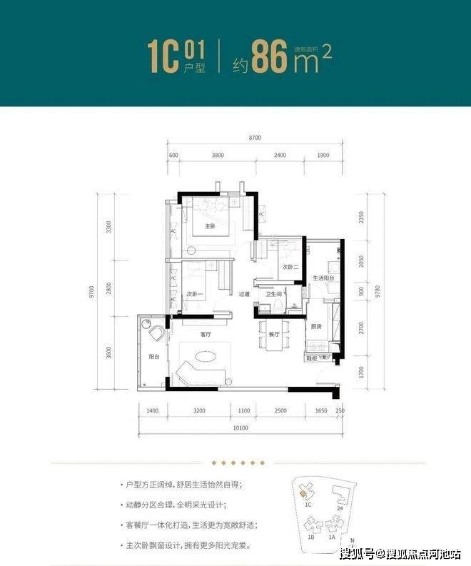 建面约82-89㎡ 舒居准现房,户型格局方正,约3.6-3.8米开阔客厅,使用率极高。