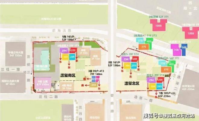 北区:规划两栋约200-240米超高层住宅;南区:规划两栋约150–200米住宅+一栋250米公寓。
