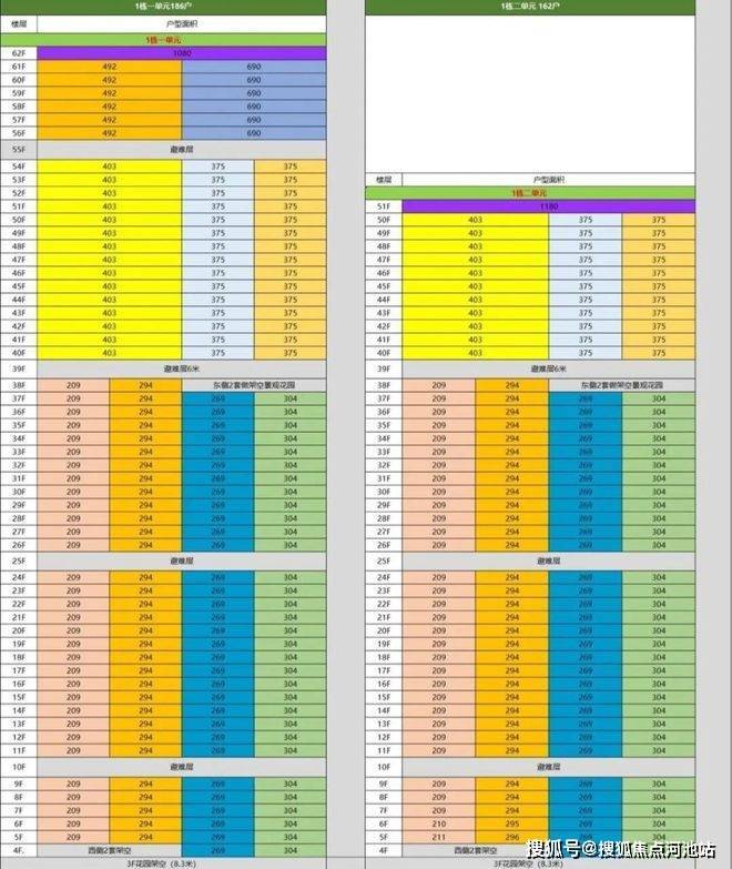 1栋1单元和1栋2单元,楼层户型价格表已整理