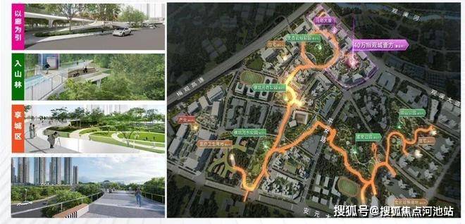 独创规划超3.6km空中连廊,串联5大公园,商业,住区、办公、文化休闲、生态康养等多个特色主题环游路线,超23公顷的生态公园,奢享密度比肩香蜜湖。