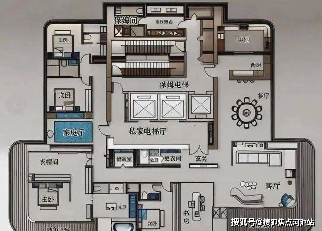 中信元湾府的户型设计明显跳脱旧思维,从横厅尺度、公区布局到生活动线,都向国际一线大平层靠拢。