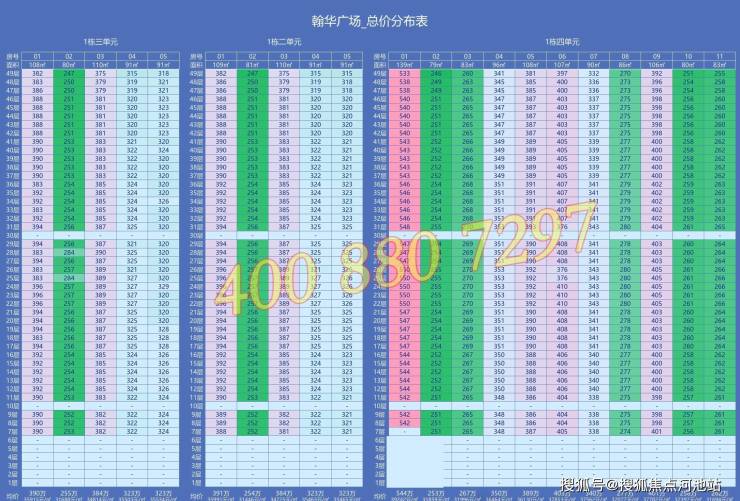 二期翰华广场,总占地面积约1.6万㎡,总建筑面积约23万㎡,计容建筑面积约18.05万㎡,容积率10.69,绿化率30%,共由3栋49F高的住宅+1栋办公楼组成,其中1栋1单元办公楼32F,1栋2/3/4单元住宅49F。