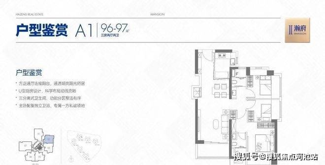96-97㎡3房2厅2卫02(A1)户型,设计的是竖厅两个半开间朝东南,客厅开间3.5米,LDKB一体化,S墙设计预留冰箱卡槽位,动静分区,次卧东北向。