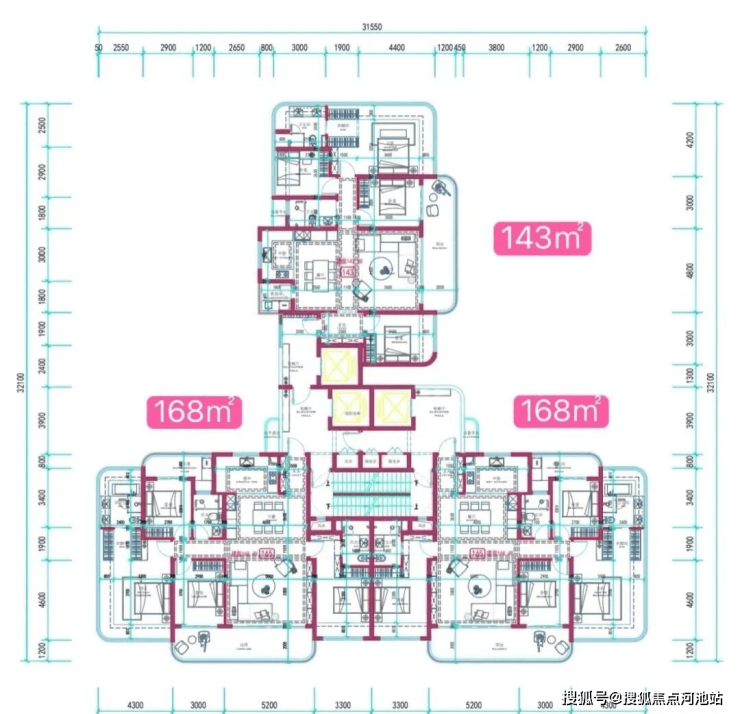 层高22层~24层,总楼高最高限制在80米左右。项目规定容积率3.41但是好像最终建面容积率在4.12了。