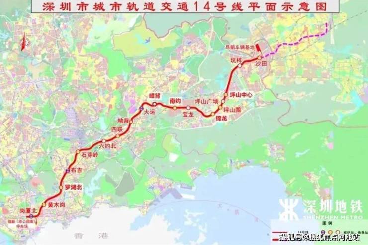 14号地铁线,该线路是从坪山沙田开往福田岗夏北的快速线,设计时速120公里,4站到大运,9站到布吉,10站到罗湖,12站到福田岗厦北,用时43分钟。