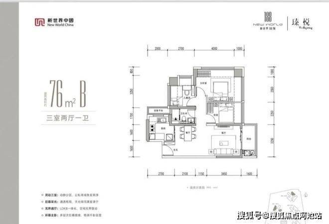 新规高得房率,76㎡做三房、96㎡做四房,同面积多一房