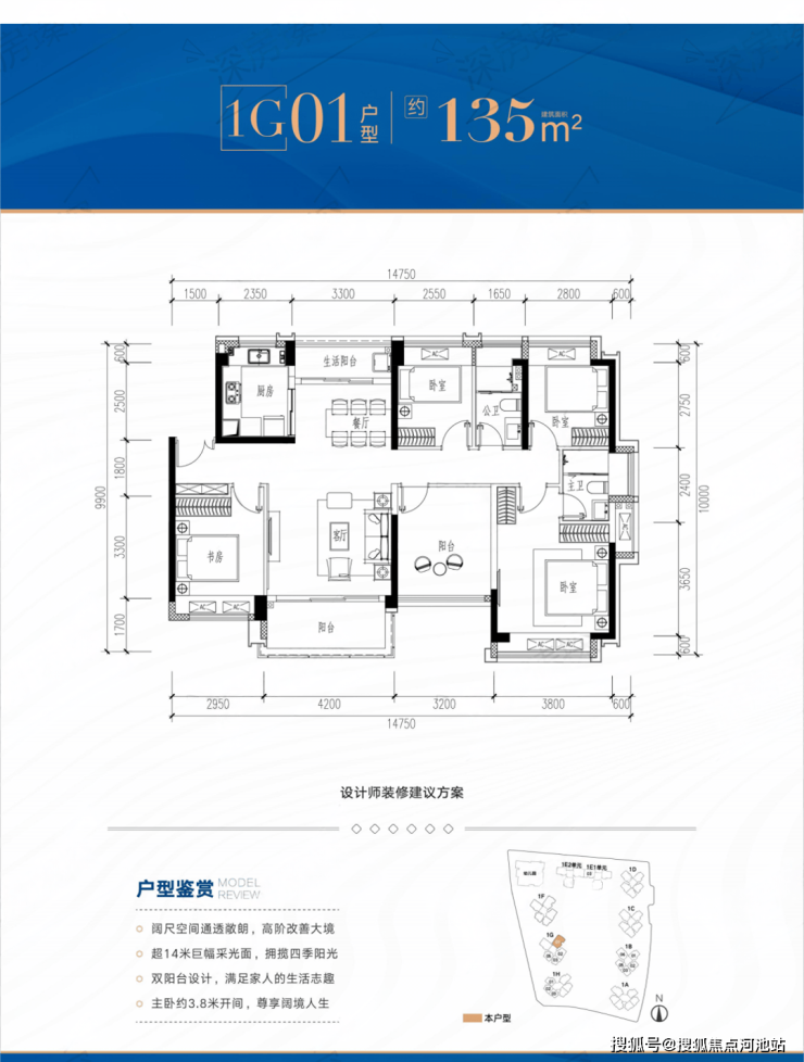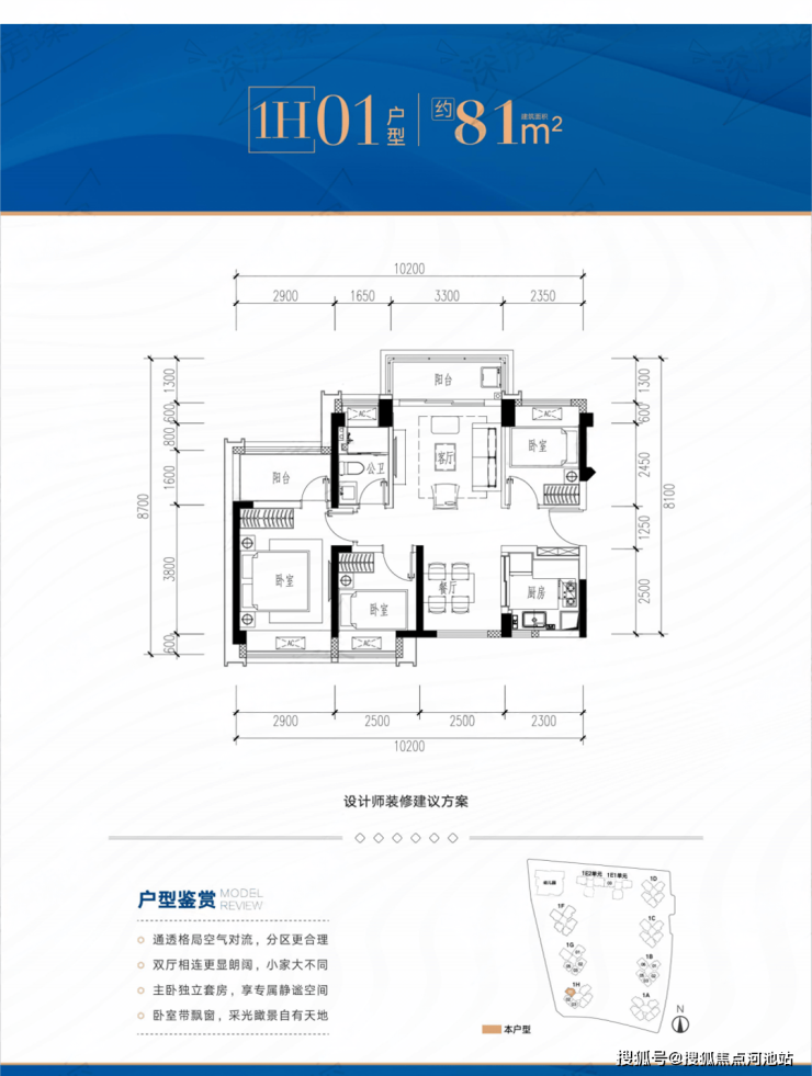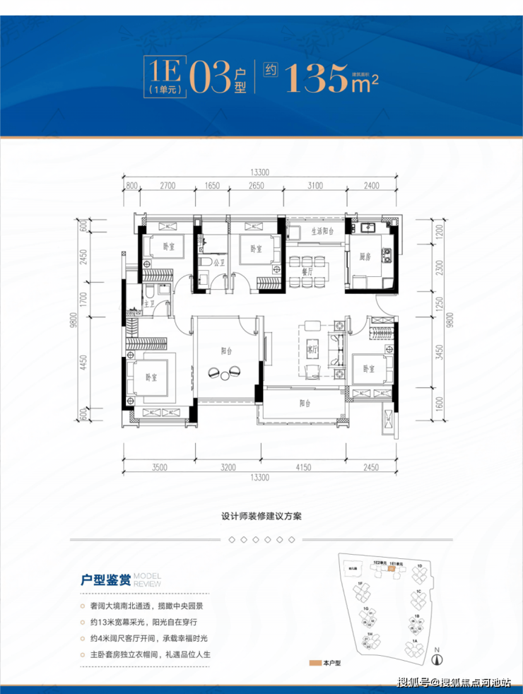 本次推售1栋共874套房源,户型包括81㎡3+1房、89-109㎡4房2卫和135m²5房2卫。
